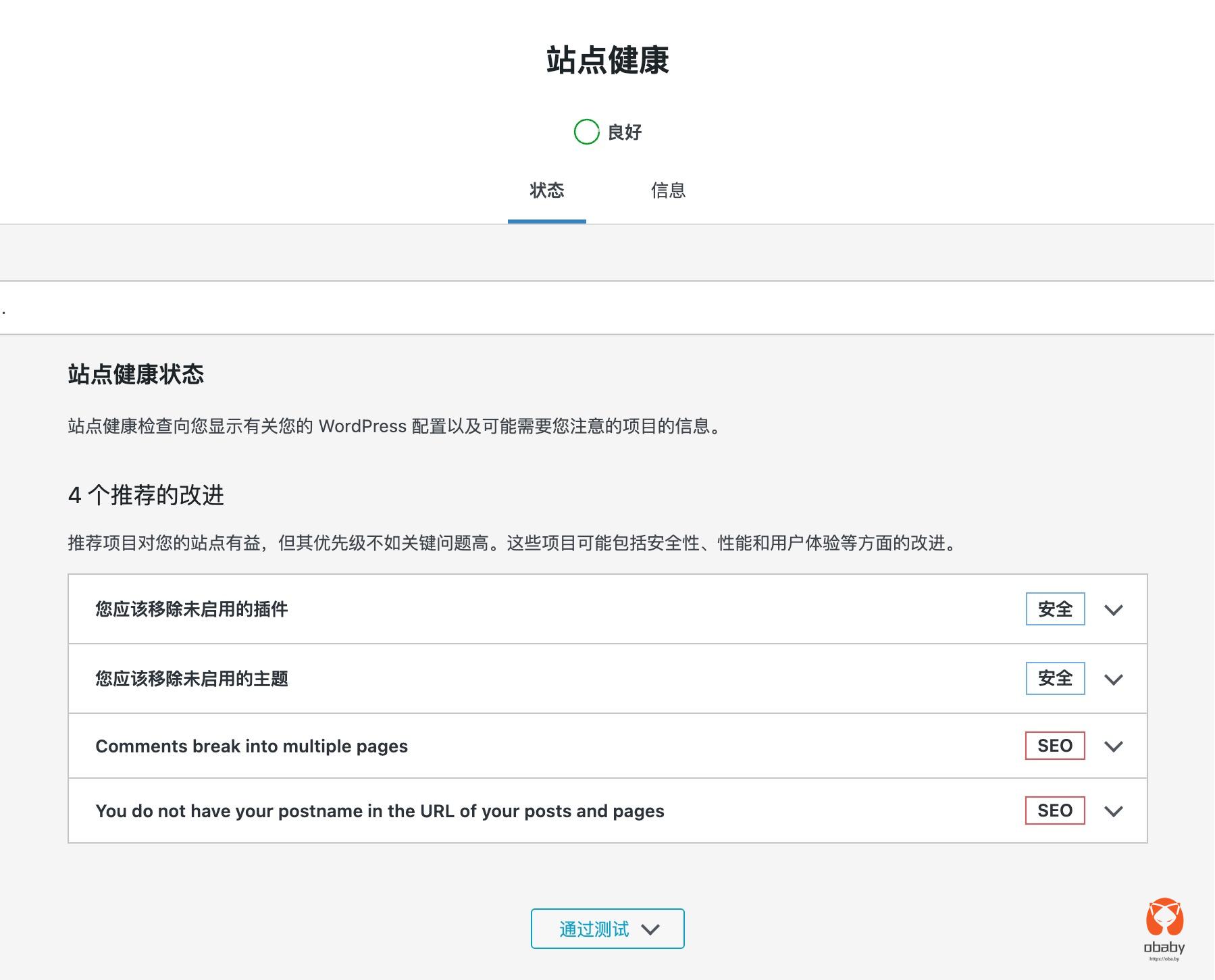 不过,有的东西确一直没解决,那就是从之前的7.4,到现在的8.4版本,站点健康在响应速度慢的时候就会显示: